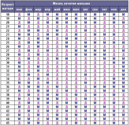 Кроме таблицы, вы можете пользоваться специальным календарем. Использовать его очень просто - нужно просто знать возраст мамы. Если маме, например, 27 лет, то, согласно календарю, для зачатия девочки идеальны: январь, март, май, июнь, ноябрь.
