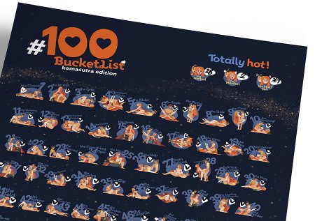 Как выглядят скретч-карты для путешественников знают все. А вот что собой представляет скретч-карта для влюбленных? Вместо стран и континентов на ней изображены позы для секса. Когда ты и твой партнер испробуете определенную позу - отметьте ее на карте и приступайте к новой. Стоимость карты - 200-400 гривен.