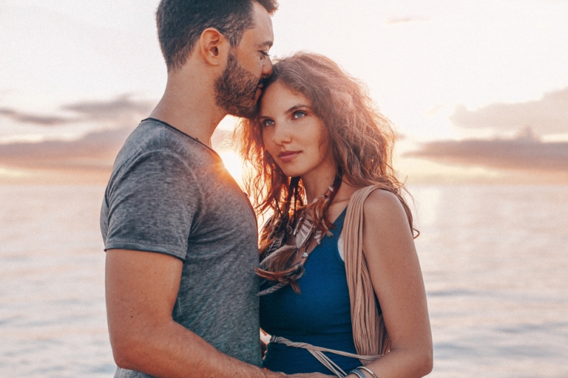 Девушка лежит на боку спиной к мужу