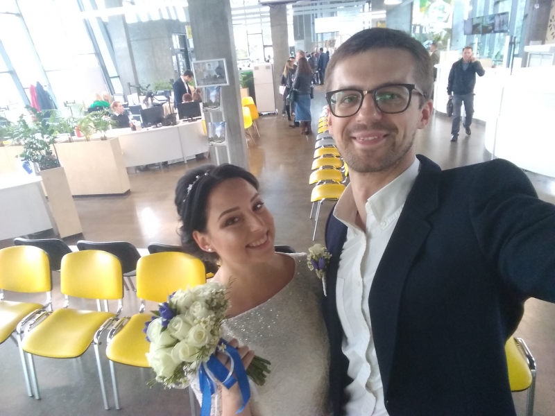 Источник: личный архив Алина Шубская Автор Конечно, для этого тебе понадобится жених, паспорт и немного денег, остальное - возможно. Между подачей заявления в ЗАГС и свадьбой часто проходит не один месяц. Это зависит от наличия свободных мест на регистрацию брака. Но даже в самые непопулярные периоды, со дня на день не расписывают. Говорят, промежуток нужен, чтобы пара могла еще раз подумать и окончательно решить, хотят ли они вступать в брак. Но в наше время, когда пара часто живет до брака вместе, подобные тонкости уже не необходимы. Потому весьма популярен стал сервис, который может поженить за сутки. Там замуж вышла наша редактор Алина Шубская, на своем опыте попробовав, как это. Предложение мой молодой человек сделал мне месяц назад. Вообще-то, я всегда хотела пожениться в теплое время года, а он хотел сделать мне предложение в моем любимом городе, Будапеште. Что и сделал, когда мы поехали туда в сентябре. Так что теплых дней оставалось совсем мало и мы решили не полагаться на ЗАГС, а попробовать зарегистрироваться в сервисе Готово, который предоставляет эту услугу за сутки. Мы выделили себе три недели на подготовку и выбрали дату. Дату можно выбрать не любую: например, дешевле всего жениться во вторник и среду (ну как дешевле, цена стартует от 4800 гривен). В пятницу и субботу это может обойтись в 8 тысяч гривен, а если хотите гостей, специальную музыку и прочие дополнительные атрибуты: цена будет расти до 12 000 гривен. Мы выбрали самый экономный пакет, свадьба в среду за 4800. Но в нем нельзя забронировать дату и время, это обошлось еще в 600 гривен. В сервисе мы заключили договор, где за нами закрепили дату и время. Для этого нужны паспорта, идентификационные коды, от меня потребовалось свидетельство о разводе, а от жениха - подтверждение, что он не военнообязанный. Все выплаты производятся там же, в автомате. Есть еще какие-то государственные комиссии. Так вот, в отличие от ЗАГСа, ты не бегаешь с бумажкой по банкам. А платишь все сразу и на месте. После этого всего можно жениться хоть на следующий день. Но мы уже выбрали дату. В запланированную дату нужно прийти за полчаса с паспортом, кольцами и шампанским. Отдать паспорта, за эти полчаса печатается свидетельство о браке. Гости в минимальный пакет услуг не входят, но разрешено зайти родителям и фотографу. Там же в сервисе есть красивая светлая комната, отделенная резной дверью. За ней происходят свадебные церемонии. На каждую полчаса, как и в ЗАГСЕ, только помещение более симпатичное и современное. Здесь же можно заказать фотографа, от 800 гривен она снимет церемонию. Ведет свадьбу работница сервиса, говорит не много, просто поздравляет и предлагает обменяться кольцами. Все быстро, современно, но при этом очень трогательно. После можно выпить шампанское в холле, в сервисе есть небольшое кафе. И все, всего за сутки вы муж и жена. Кстати, печатей в паспорт больше не ставят.
