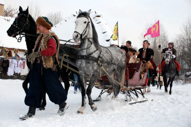 Катание на лошадиных упряжках – любимое развлечение во время Масленицы, и самым многолюдным оно было в четверг. На заснеженных улицах парни показывали свою удаль, женихи хвастались невестами, молодые пары демонстрировали, что их любовь не угасла, а семьи со стажем – ездили в гости к родным и знакомым. Катались на лошадях не просто так, а обязательно по часовой стрелке, вслед за ходом солнца.
