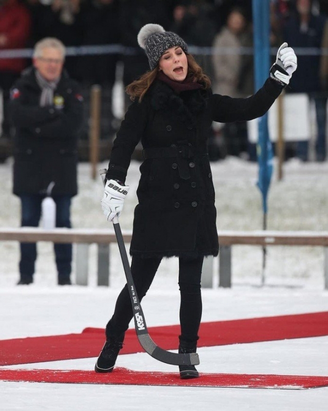 Кейт Миддлтон и принц Уильям прилетели в Швецию с официальным двухдневным визитом. Там, к всеобщему удивлению, герцогиня Кембриджская продемонстрировала навыки владения клюшкой, сыграв в хоккей со шведскими школьниками. instagram.com/kensington_palace_/ Удивительно, но беременность никогда не становилась помехой для . Кейт Миддлтон, не считая небольшого перерыва из-за токсикоза в первом триместре. Сейчас герцогиня и принц Уильям отправились в тур по Северной Европе, сделав первую остановку в столице Швеции Стокгольме. instagram.com/kensington_palace_/ И там, перед встречей с королем и королевой страны, пара заехала на каток. Герцогу и герцогине Кембриджским предложили попробовать забить гол в ворота молодежной команды по хоккею. Учитывая положение Кейт, она не стала надевать коньки, более того, на льду постелили красную дорожку, чтобы королевская особа не споткнулась. Супружеская пара ударила по воротам, им дали по три попытки. Кейт даже удалось забить гол, однако по итогам турнира победителем вышел Уильям, который попал дважды. instagram.com/kensington_palace_/ Поклонники королевской семьи поразились тому, что, несмотря на интересное положение, Кейт приняла приглашение сыграть на льду, и даже показала хороший уровень владения клюшкой. «Настолько она удивительна! Уильям тоже хорош, но она беременна, а из них такая команда! Кэтрин делает все без усилий» «Они настолько естественны, что вы видите, кто они на самом деле» «Просто посмотри на герцогиню Кейт! Она настоящий боец, и мы любим ее за это!» «Хорошая спортивная Кейт, уверен, не была бы беременной, встала бы на коньки» The Duchess takes a shot at goal!