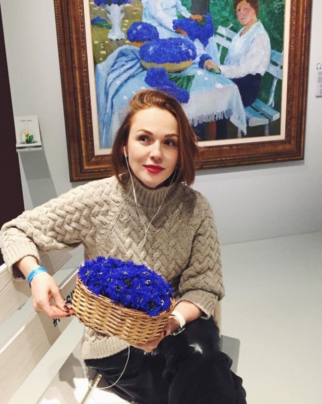 На новом снимке в Инстаграме Альбина предстала в необычном для нее образе. Она сидит в простом бежевом свитере и черных облегающих брюках, держа перед собой корзину с синими васильками и слушая в наушниках программу музея. Любопытно, что за спиной певицы висит картина, на которой изображены такие же цветы, что и у нее в руках. «С пользой для души», - так подписала Альбина свой снимок.