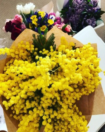 Букет мимоз в качестве признания получила певица Слава. Любопытно, что многие считают мимозу настоящим весенним цветком и уверяют, что раз пахнет мимозой, то и весна рядом!
