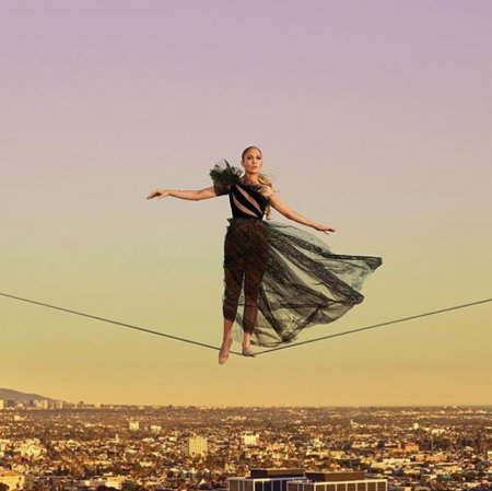 На красочной съемке для глянцевого разворота Дженнифер Лопес не только похвасталась роскошным телом и прекрасной физической формой, но и показала свою смелость и бесстрашие. Так, в фешенебельной фотосъемке звезда балансирует на канате, стоит у самого края небоскреба, а также доверяет свою жизнь красавцу, позволяя ему удерживать ее на весу над городом.