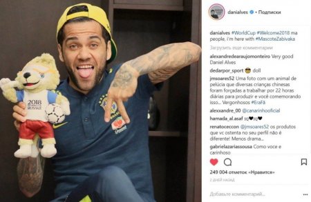 А вот что написал защитник «Пари Сен-Жермен» и сборной Бразилии по футболу Дани Алвес под своей фотографией с плюшевым талисманом Чемпионата мира ФИФА 2018 в России:«Мои люди, добро пожаловать на Чемпионат мира — 2018, я здесь вместе с Забивакой».