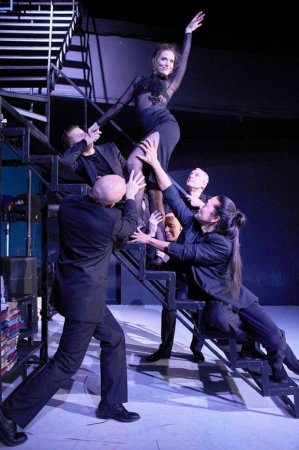 Джазовая музыка гармонично вписалась в современный стиль постановки – современный офис, тени и, даже, лестница – в спектакле участвует каждая деталь.