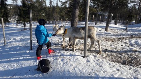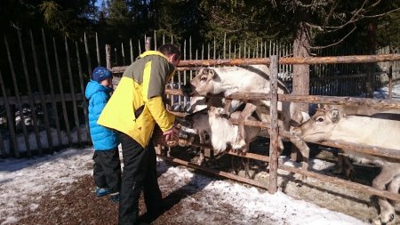 Но самое главное развлечение — специальный детский маршрут, проложенный через лес с разнообразными артефактами, с настоящими живыми оленями и собаками хаски. В середине маршрута есть место для отдыха, где можно развести костер и пожарить сосиски.