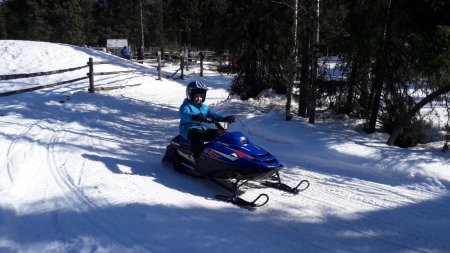 Если дети катаются на снегоходах по огороженной территории, то для взрослых проложены специальные маркированные трассы — по лесам, полям и покрытым льдом озерам.
