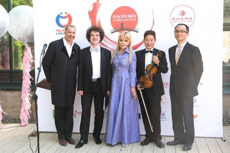 В рамках масштабного проекта “Культура жить”, приуроченного к перекрестному году “Россия – Япония” в “Аптекарском огороде” Ботанического сада МГУ японские и русские семьи впервые отметили вместе День мамы. О том, насколько необходимы такие инициативы, говорили в приветственном слове Советник посольства Японии в России, руководитель отдела японской культуры Japan Foundation Такахаси Масакадзу и глава корпорации RHANA, вдохновитель проекта “Культура жить”, член-корреспондент РАЕН Екатерина Диброва. “Объединение двух культур может действительно многое нам дать… Но кое-что у нас и так общее – культ семьи, семейные ценности, любовь к маме. Это нерушимо!” – прокомментировала Екатерина Диброва. Елена Борщева На праздник пришли многочисленные мамы-японки, живущие и работающие в Москве, а также мамы-москвички, среди которых было немало звезд. Со своими детьми появились радиоведущая Алла Довлатова, светская львица Эвелина Бледанс, актриса Екатерина Волкова, актриса Елена Борщева, дизайнер Алиса Толкачева, советская и российская киноактриса Наталия Белохвостикова, актриса Мария Романова и другие. Екатерина Диброва, Алла Довлатова и Эвелина Бледанс Программа праздника была весьма насыщенной. После торжественных слов и поздравлений в оранжерее состоялось выступление знаменитого скрипача-виртуоза Кодзи Моришита, приехавшего в Россию по личному приглашению Екатерины Дибровой. На скрипке, созданной венецианским мастером в 1700 году, он исполнил шедевры русских композиторов. После экскурсий по оранжереям старейшего в стране ботанического сада и мастер-классов для детей гости посмотрели спектакль-хит частного театра С.А.Д, который располагается в сердце “Аптекарского огорода”, “Щелкунчик в стиле стимпанк” с Кириллом Рубцовым в главной роли. Спектакль представлял публике заслуженный артист России Влад Демченко. Эвелина Бледанс с сыном Как и в большинстве событий, организованных в рамках проекта “Культура жить. Активное долголетие”, гости праздника могли участвовать в благотворительной инициативе. Фонд “Линия жизни” предложил собравшимся озеленить Дерево Желаний, купив листок с пожеланием и прикрепив к дереву, которое в конце праздника было по-весеннему зеленым. Часть вырученных средств будет направлена на лечение тяжелобольных детей.В атмосфере весеннего праздника звездные мамы с удовольствием делились воспоминаниями о собственных мамах и своем детстве. Вот что, например, рассказала известная ведущая Алла Довлатова: «Мама была необыкновенно красивая – такие женщины по улицам не ходили, только на экране могли появиться. И она учила меня быть женщиной, разрешала даже красить ногти в детском саду… Говорила: «Ты с детства женщина – так почему нет»? С юмором вспомнила свой театральный дебют Елена Борщева: «С мамой связано мое первое выступление на сцене. Я пела тогда песню из одного только слова «Мама, мама, мама». Мне было два года – с этого началась моя карьера». Влад Демченко. Даниил Контуашвили. Екатерина Диброва. Кодзи Моришита. Такахаси Масакадзу Эвелина Бледанс особенно тепло говорила о том, как ее воспитывала мама: «Мама была моим лучшим другом, моей подругой, которая никогда не давила и ни на чем не настаивала». Российская актриса театра и кино Екатерина Волкова поделилась трогательным воспоминанием из детства: 