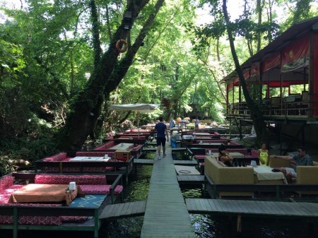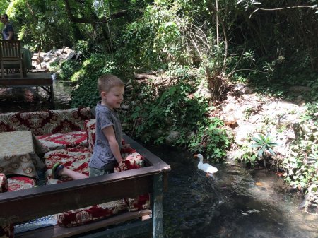 Роскоши ждать не стоит, но все вкусно, любители сладкого обязательно оценят халву. Не удивляйтесь, что она горячая и жидкая — вкусно! Только с детьми может быть беспокойно — они так и норовят нырнуть с узких мостиков за белоснежной уткой.