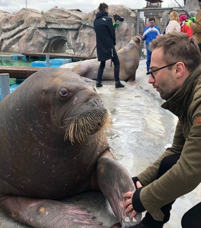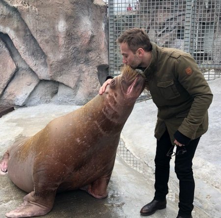 Watson 02-июн, 16:00 1 478Дмитрий Шепелев опубликовал в своем микроблоге фотографии из ижевского зоопарка. Мужчине посчастливилось сфотографироваться с местной моржихой, которая, как показали снимки, выразила ему симпатию. Да и сам телеведущий не смутился и поцеловал усатую подругу в нос.