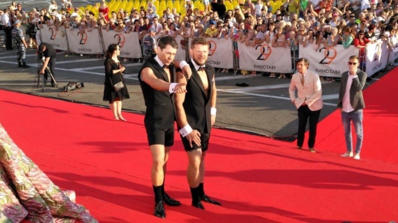 Актеры Владимир Яглыч и Павел Деревянко устроили фееричное шоу прямо на красной дорожке перед входом в зал Зимнего театра. Мужчины мастерски имитировали драку, чтобы подогреть интерес публики к премьере новой провокационной комедии «Ночная смена», в которой они оба принимали участие.