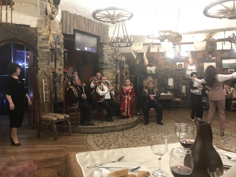 Одно из таких мест — ресторан "Старый Ереван". Здесь нас покорила не только восхитительная кухня, но и замечательный персонал. Впрочем, даже не еда главная фишка в этом ресторане, а народные песни и танцы. Поют профессиональные артисты, а танцуют раззадоренные туристы и местные жители. Вдоволь насладившись "представлением", можно было с чистой совестью и поесть. Невероятно вкусный ужин с бокалами местного вина для наших бабушек обошелся нам всего лишь в 4000 рублей на шестерых.