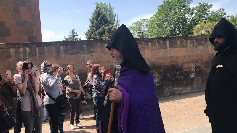 Помимо Каскада одной из известнейших достопримечательностей является Эчмиадзин — древний монастырь с интересным прошлым. В его стенах хранится часть известного ковчега и целое копье из древних времен, но помимо этого там живет армянский Католикос, его резиденция находится на территории Эчмиадзина. Кстати, мы его даже видели. Тот важно прошел мимо нас. Его окружали люди в темных плащах, что напоминало некий темный ритуал, а мы на нем были непрошеными гостями.