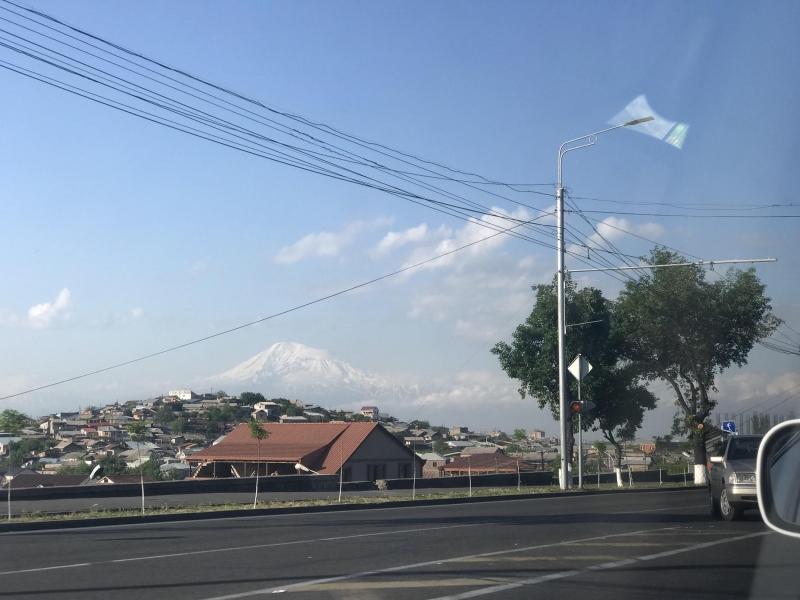 Даже те, кто никогда не был в Армении, знают величественную гору Арарат. Чаще всего Арарат видят не полностью, или же он вовсе скрывается за пушистыми облаками. Нам выпал шанс увидеть его во всей красе! Могучая гора так и притягивает к себе взор каждого. Арарат возвышается на 5137 метров над уровнем моря. Отмечу, что многие, включая меня, считали, что гора-гигант принадлежит Армении, но на самом деле Арарат расположен на территории соседней Турции.