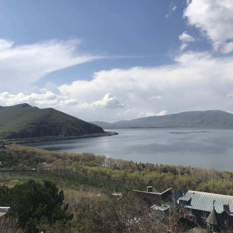 Еще одна, пожалуй, самая известная достопримечательность — озеро Севан. У меня язык не поворачивается сказать "озеро" — это скорее море или даже океан, бескрайний океан. Бросив мимолетный взгляд на него, тут же осознаешь его величие. Озеру не видно ни конца, ни края. Глубина Севана составляет примерно 80 метров.