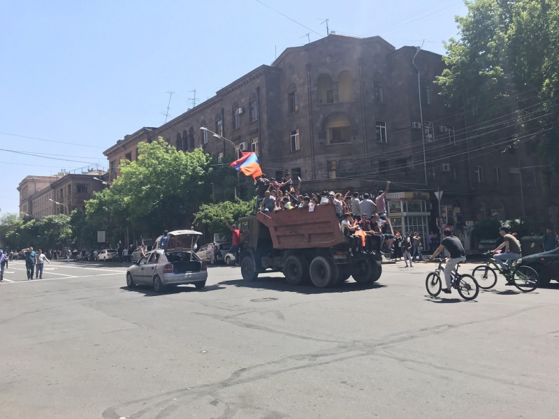В итоге граждане собрались на площади Революции, слушая выступающих с новостями о происходящем в парламенте. Через площадь пришлось пройти и нам, прокладывая себе путь локтями. Но такое сборище было лишь в первый день, а на следующий люди просто радовались предоставленному выходному. Народ играл в вышибалы на широких и длинных, словно змеи, улицах, пел народные песни и задорно танцевал. Нам было чему удивляться и порадоваться за граждан Армении.