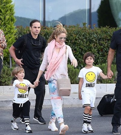 Одной из стран пребывания Шакиры стала Турция, где репортерам удалось сделать семейный снимок очаровательной блондинки, ведущей за руки сыновей, одетых в одинаковые футболки с желтыми смайликами.Удивительно, но мальчики выглядят совершенно по-разному и их с трудом можно было бы принять за братьев. Младший Саша растет полной копией своей звездной матери, в то время как старший Милан унаследовал черты лица отца-спортсмена.