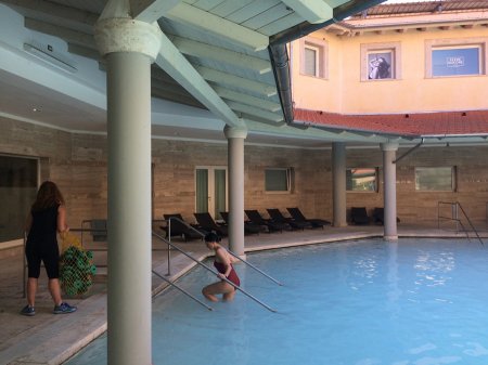Здешняя вода богата сероводородом, поэтому приближение к термам вы почувствуете заранее — по запаху. Но к нему быстро принюхиваешься и перестаешь замечать, тем более, вода из бювета — да, здесь можно не только принимать ванны, но и пить из целебных источников — вообще не пахнет.