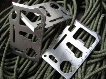 - Мультитул-карта или мультитул-браслет. Швейцарский нож — прошлый век! И это признают даже сами швейцарцы. На пластинке размером с обычную банковскую карту умещаются открывашка, консервный нож, линейка, несколько гаечных ключей и отвёрток. Аналогичный арсенал содержит мультитул-браслет, который надевается на запястье.