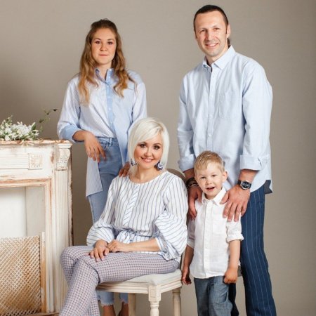 За успехом Василисы Володиной стоит крепкий тыл в виде ее семьи. Муж Сергей давно бросил собственное дело (он занимался логистикой) и все свои силы направил на ведение дел жены и распределение ее рабочего времени. У Володиных подрастает 17-летняя дочь Виктория, а в 2015 году у пары родился сын Вячеслав. На днях Василиса Володина показала фото всего семейства. Телезвезда позирует на снимке в блузке в полоску и клетчатых брюках, Виктория выбрала для съемки голубую рубашку и джинсы, Сергей и подросший Вячеслав запечатлены в светлых рубашках и брюках.