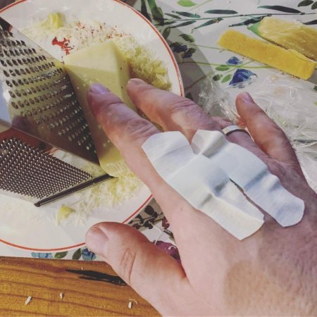 Недавно Дмитрий рассказал, что готовил блюдо для Полины, но в процессе порезал руку об терку. Исхаков показал фото израненных пальцев, заклеенных лейкопластырем, на фоне тарелки с натертым сыром.