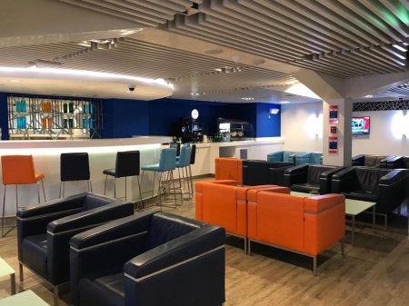 В Дубае у flydubai — свой терминал, где есть и магазины, и кафе, и прекрасный двухэтажный лаунж с вкусным чечевичным супом и глубокими синими и оранжевыми креслами (в фирменных цветах авиакомпании) для пассажиров бизнес-класса, и другой — для пассажиров с банковскими картами, которые предполагают посещение залов ожидания.