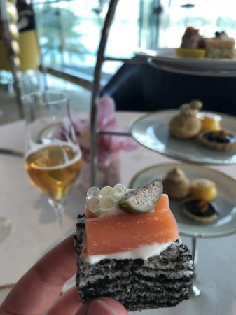 На этажерке в виде паруса подаются, как и положено, сэндвичи, маленькие пирожные, но сначала — легкий игристый напиток — тоже с частичками золота, разумеется. Все вкусно и даже сытно.