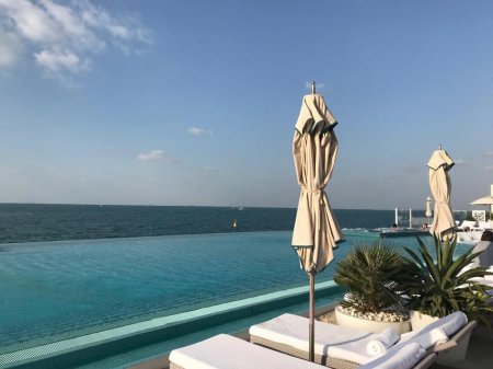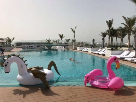 Один бассейн с пресной водой, другой — infinity pool, "уходящий" в Персидский залив — с морской.