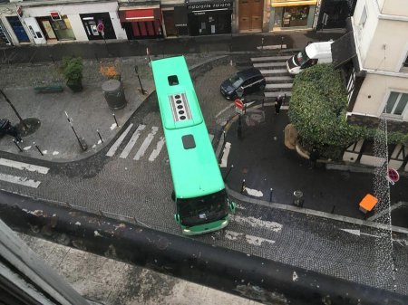Вид из нашего окна. Удивительно, как водители городских автобусов умудряются лавировать на узких улочках Монмартра!