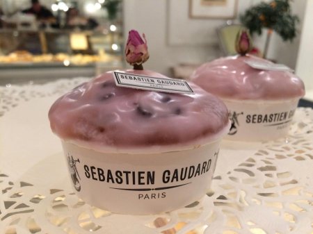 И напоследок — "малахитовая шкатулка": темно-зеленый магазин потомственного кондитера Себастьяна Годара (Sebastien Gaudard) — и нежно-розовый десерт в честь открытия после пятилетней реставрации Театра Мариньи (Theatre Marigny), круглого театра в самом начале Елисейских полей.