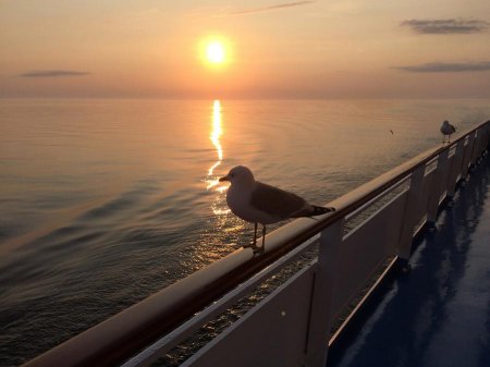 Вечером, когда теплоход покидал Валаам, нас провожал чудесный закат и чайки. Надеюсь и верю, что еще вернусь.