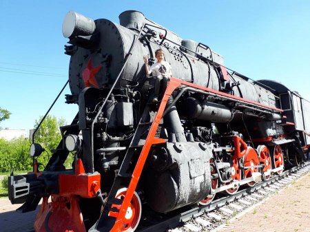Музей паровозов рядом с железнодорожной станцией оказался совсем небольшим — всего 3 экспоната-паровоза. Но на них можно было залезать, и это очень порадовало детей.