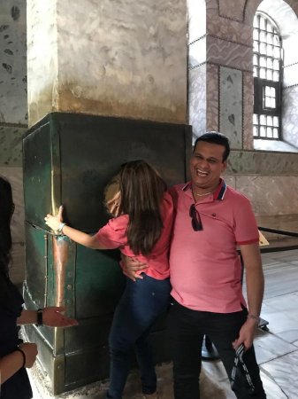 Слева от входа, там, где дверь на второй этаж — "Плачущая колонна", знаменитый туристический аттракцион. Покрытая снизу листами меди постоянно влажная мраморная колонна, по легенде, исполняет желания: нужно лишь умудриться, вставив большой палец в отверстие, прокрутить ладонь, не отрывая, на 360 градусов.