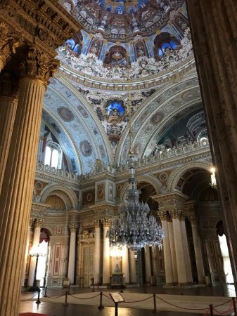 Зато есть самая большая люстра из богемского стекла в мире, подаренная королевой Викторией — она весит 4,5 тонн и достает почти до пола. И удивительная лестница с балясинами из горного хрусталя, которую часто повторяют архитекторы современных роскошных турецких отелей. В общем, как любят на Востоке: всё самое-самое — и золото не забудьте (его, кстати, было использовано 14 тонн).