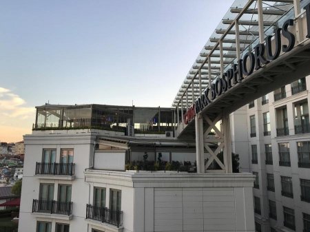 Небоскребы в Стамбуле отсутствуют из-за сейсмической активности, поэтому из окон хорошо виден весь город: и азиатскую часть на том берегу, и сбегающие к морю кварталы. А стеклянные мостики с красными ковровыми дорожками, перебегающие из здания в здание, вообще тянут на променад для звезд — здесь у всех возникает почти неконтролируемое желание сделать потрясающее фото.