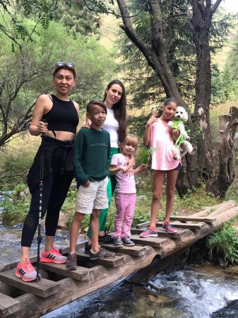 За пять дней мы успели и в пешую горную прогулку сходить — с рюкзаками, специальными палками для скандинавской ходьбы, термосом с горячим чаем и домашней самсой.