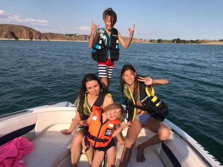 Здесь мы купались в бассейне, бегали босиком по горячему песочку и катались на аташкином (дедушкином) катере и привязанном к нему "банане".