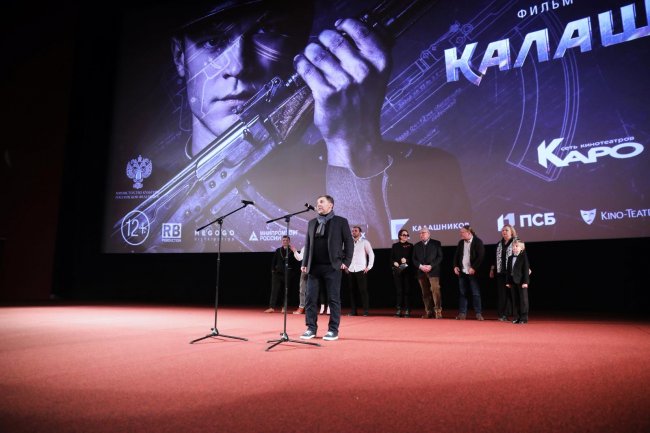 Актриса Ирина Безрукова На премьере фильм представили: режиссер и продюсер Константин Буслов, автор сценария и продюсер Сергей Бодров, актеры Ольга Лерман, Елена Морозова, Валерий Баринов, Эльдар Калимулин, Максим Стоянов, оператор Леван Капанадзе. Актриса Марина Зудина Премьеру фильма посетили: режиссеры Петр Буслов, Клим Шипенко, актеры Екатерина Гусева, Алена Бабенко, Анна Банщикова, Сабина Ахмедова, Марина Зудина, Карина Андоленко, Анна Чурина, Кирилл Сафонов и Александра Савельева, Ольга Филиппова, Ирина Безрукова, Алена Чехова, Настасья Самбурская, Александр Самойленко, Софья Донианц, Мария Луговая, Мария Романова, Ольга Хохлова, Софья Гершевич, Илья Глинников, продюсеры Рубен Дишдишан, Игорь Угольников, Антон Калинкин, Елена Север и др. Режиссер Клим Шипенко «В нашем художественном фильме мы рассказываем об определенном периоде жизни Михаила Тимофеевича Калашникова — с его раннего детства и до 1949 года, когда за создание своего легендарного АК-47 он получил Сталинскую премию, — говорит режиссер и продюсер картины Константин Буслов. — Поскольку перед нами стояла задача уложить огромный период жизни великого человека в полтора часа экранного времени, а также учитывая тот факт, что картина все-таки художественная, игровая, мы позволили себе некоторые допущения и собирательные образы, но при этом старались внимательно относиться к фактам биографии Калашникова, опирались на его мемуары, на воспоминания знавших его людей и документы, связанные с его жизнью. В работе над фильмом принимали участие дочь конструктора Елена Михайловна Калашникова и консультанты концерна «Калашников», которые внимательно следили за подлинностью повествования. Но — главное — мы добивались художественной правды». Певица Александр Савельева и актер Кирилл Сафонов «Работа над биографическим фильмом — это всегда очень интересный опыт, — говорит один из авторов сценария Сергей Бодров, — История непростая. Михаил Калашников — танкист, получивший в первые месяцы войны тяжелое ранение. Оружия не хватает. Его, как солдата — а он старший сержант — зло берет: почему у немцев есть автоматы, а у нас нет. А даже если есть, то там что-то заклинивает. И он понял, что хочет сделать автомат для солдат. И решил, что справится с этой задачей быстро. Война же идет сейчас. Но оказалось, что быстро ничего не получается. Практически семь лет — с 1941 по 1948 — он работал над своим автоматом. Ну а потом началась легенда. АК-47 — до сих пор самое известное оружие в мире». Актриса Екатерина Гусева «Наш фильм рассказывает про человека, который, несмотря на отсутствие образования, раскулаченных родственников и множество комплексов, преодолевал все препятствия, шел к своей цели и добился ее, — говорит Сергей Бодров. — Полагаю, что судьба Калашникова может мотивировать многих не опускать руки». Актриса Анна Чурина Актриса Настасья Самбурская Актер Илья Глиников Премьера фильма «Калашников»