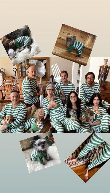 Трогательными семейными фотографиями поделилась Таллула Уиллис. На них Деми, Брюс, их дочери и даже собаки запечатлены одетыми в забавные полосатые пижамы. Знаменитости весело проводят время в особняке, принадлежащем Деми. Компанию семье Уиллис-Мур составила и новая супруга Брюса Эмма Хеминг, кроме того, поклонники разглядели на фото возлюбленного Таллулы и еще одного неизвестного мужчину. Многие предположили, что он может быть новым избранником Деми, которая в течение долгого времени оставалась одна.
