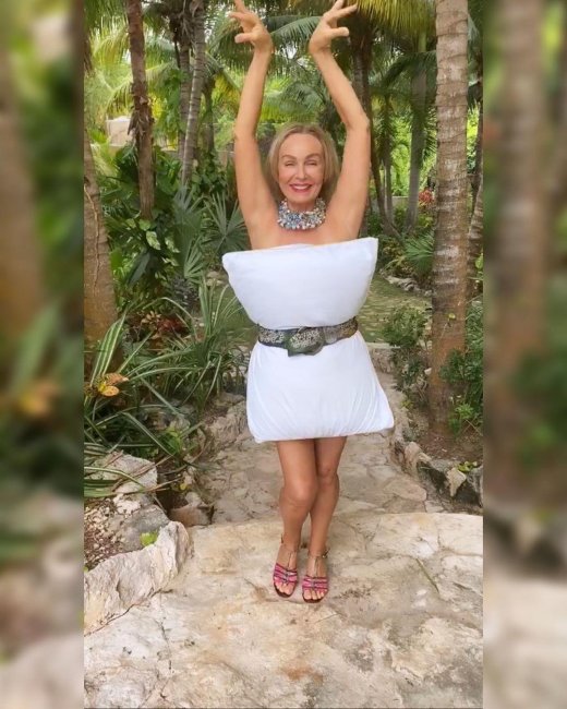 Одним из самых популярных флешмобов в последние недели стал #pillowchallenge, в котором из подушки и широкого ремня мастерят стильное платье. Главный наряд самоизоляции уже примерили Ксения Бородина, Ольга Орлова, Ким Кардашьян и другие знаменитости. Недавно в челленджу присоединилась и звезда фильмов «Мэри Поппинс» Наталья Андрейченко. Третьего мая актрисе исполнилось 64 года: праздник она отметила в Мексике, а поклонников решила порадовать необычными снимками.