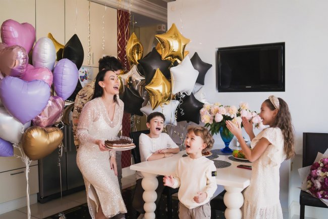 «Муж у меня человек не особо романтичный, но в этот раз он сделал мне сюрприз, от которого я была в диком восторге. На пороге квартиры он появился с роскошным букетом цветов и воздушными шарами, подарил мой любимый аромат духов. Старший сын Дима сделал картину своими руками — на ней я держу Даниила. Милана нарисовала несколько открыток и сочинила для меня стихотворение, а самый младший сделал для меня корону. День рождения получился очень милым, я — счастлива!»