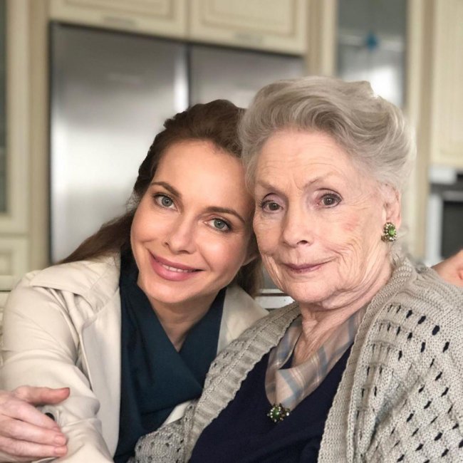 Екатерина Гусева решила порадовать публику еще и фотографиями с великой актрисой. Екатерина опубликовала несколько кадров, на которых изображена в обнимку с 82-летней Аллой Зиновьевной. Судя по всему, фотографировались коллеги на съемочной площадке, Будницкая аккуратно причесана и накрашена.