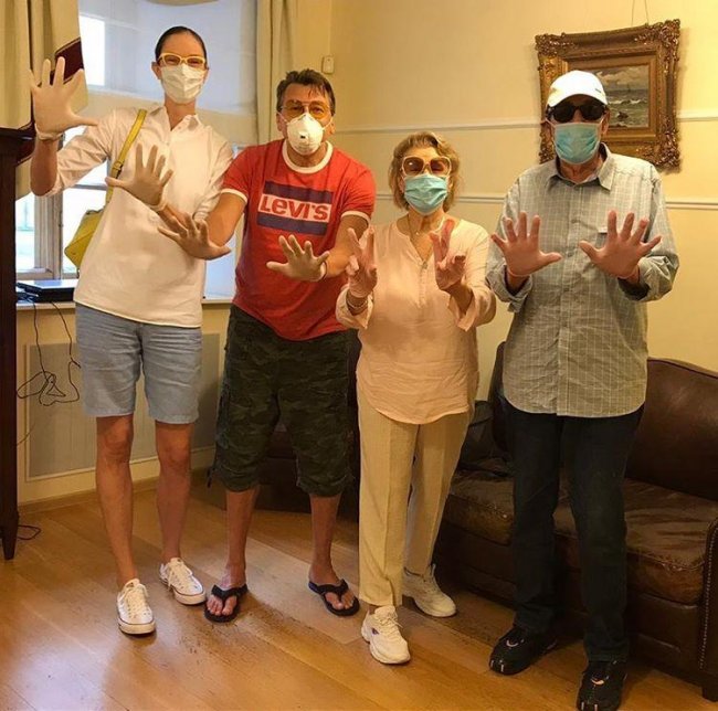 «На изоляции честно соблюдали все правила — ни с кем не виделись, только перезванивались. И вот сегодня случайным образом вся семья в сборе! Спасибо моему любимому сыну Мишечке Мукасею и Катюше за неожиданную приятную встречу!»