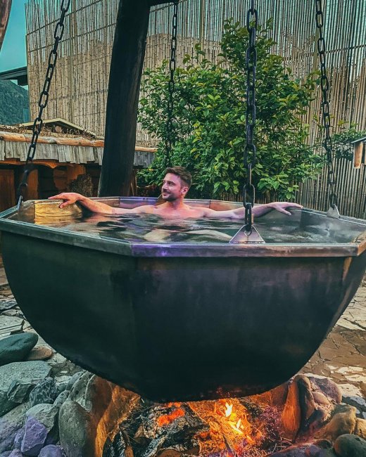 Лазарев, по всей видимости, выбрал оздоровительный и уединенный отдых. На Красной Поляне много мест, где можно пожить вдали от публики, подышать свежим горным воздухом и пройти ряд полезных процедур. Баня понравилась певцу больше всего, он опубликовал кадр, которым похвастаться может не каждый. Лазарев запечатлен в огромном чане, под которым горят дрова. Видимо, купание в такой емкости особым образом расслабляет тело после бани.