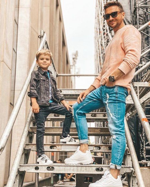 Теперь Сергей не скрывает наследников, однако кто знает, сколько еще сюрпризов он приготовил публике. Не будет загадывать, тем более сегодня в Инстаграм-аккаунте Лазарев регулярно балует фанатов снимками или видео с детьми.На днях он опубликовал совместный кадр с Никитой, который вызвал очередную волну умиления среди подписчиков. Маленький Никита растет настоящим модником. Он облачен в рваные джинсы, голубую футболку и белые кроссовки. Дополнила образ куртка из денима с подвернутыми манжетами.