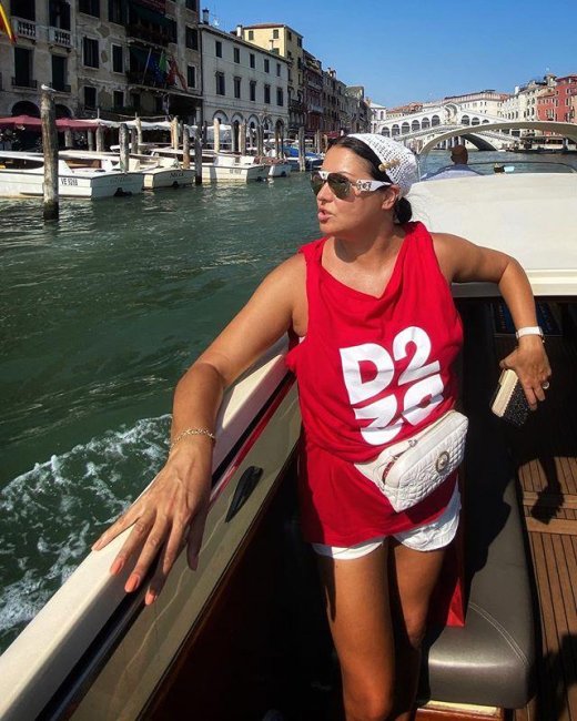 Прекрасными формами звезды можно насладиться в Инстаграме, Анна активно рассказывает о путешествии по Италии, ведя «горячие репортажи» из каждой туристической точки. Сейчас она с семьей находится в Венеции, там жарко, солнечно и очень красиво.Для прогулки по городу Нетебко выбрала короткие белы шорты и длинную красную футболку. Дополнили образ бежевые босоножки на плоской подошве, белая сумочка на поясе и элегантная белая повязка на голове.