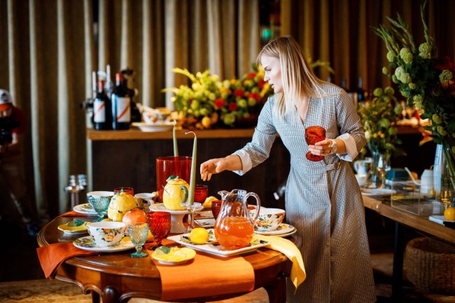 После завтрака в приятной компании началась первая часть мастер-класса по искусству декора стола, где Анастасия Белик, декоратор «Дом Фарфора», рассказала и наглядно продемонстрировала, как при помощи правильной сервировки можно воссоздать атмосферу солнечной Италии у себя дома. Гости смогли узнать много нового и интересного, например, как с помощью нескольких простых элементов искусно сменить итальянский стиль сервировки на грузинский или как создать сезонную атмосферу стола. А убрав элементы и добавив свечи или определенные фактуры и цветочные композиции, можно создать идеальную для ужина атмосферу.