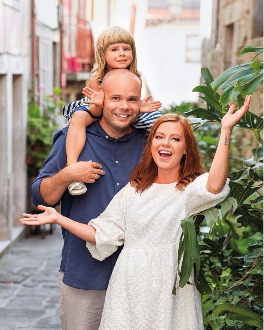 Супруги приняли решение не показывать малышку в социальных сетях и не разрешать ее участие в фотосессиях для СМИ, но сейчас Аня подросла. По словам Юлии, девочка сама то и дело просится в кадр. На это раз артистка не смогла ей отказать: в микроблоге появилось фото, на котором Юлия позирует с мужем и дочерью. Аня сидит на плечах у папы, радостно улыбаясь в камеру. Многие поклонники отметили, что девочка очень похожа на отца. Съемка проходила в Португалии, где, как оказалось, и живет Аня.